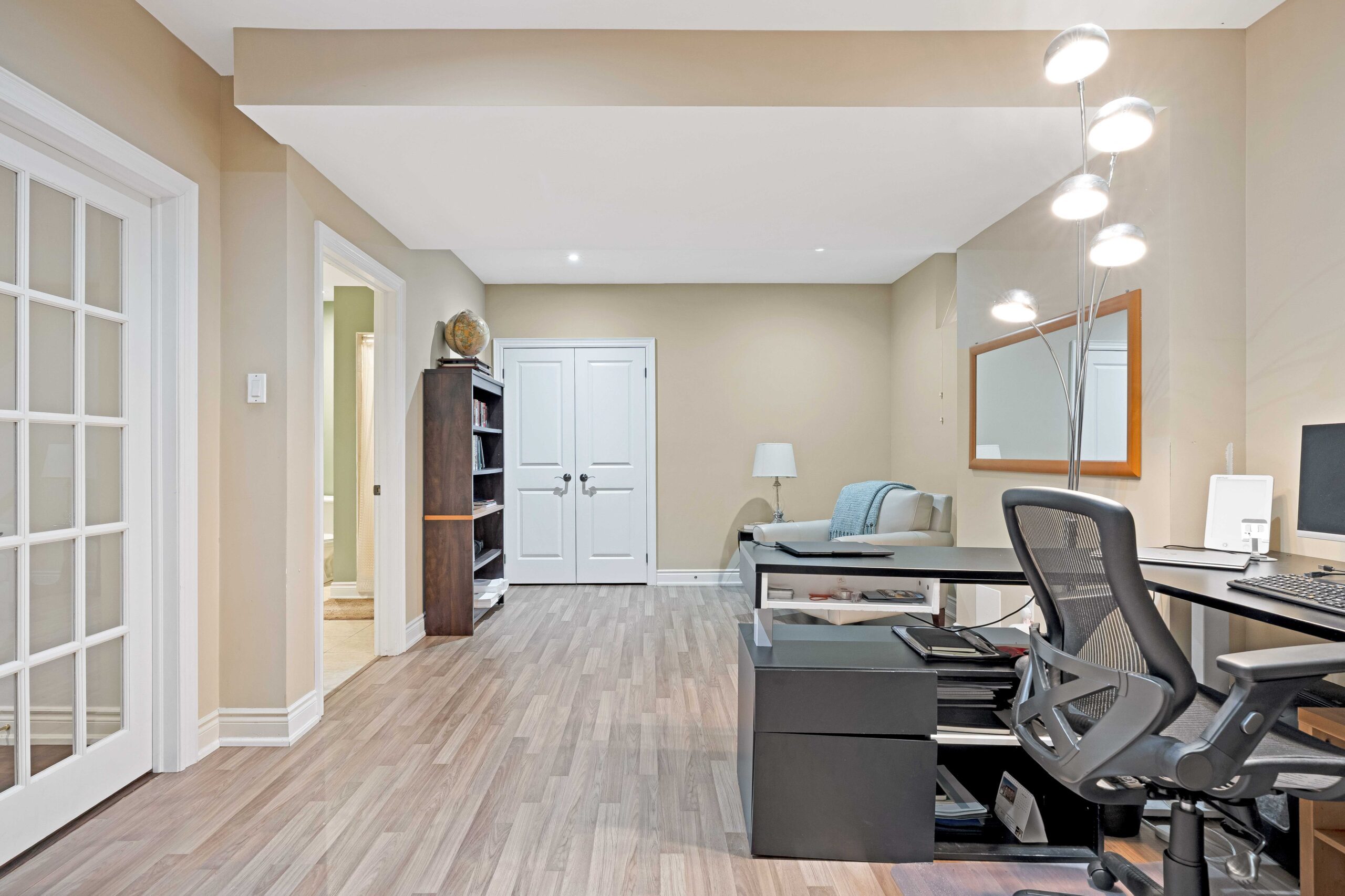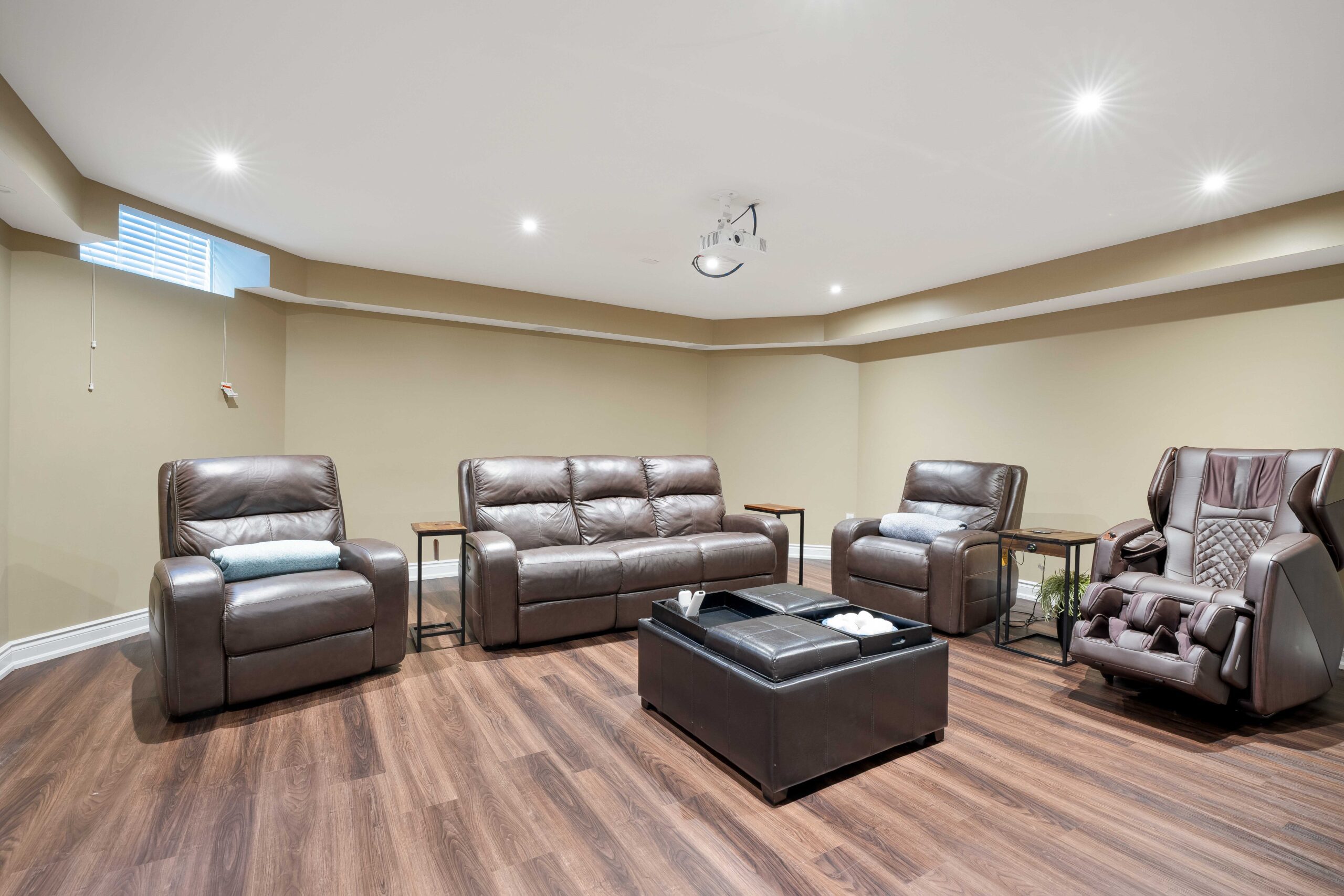 The fully finished lower level extends the home’s versatility with a dedicated media/theatre room, fitness area, 5th bedroom guest or nanny suite, additional office or bedroom, and abundant storage.