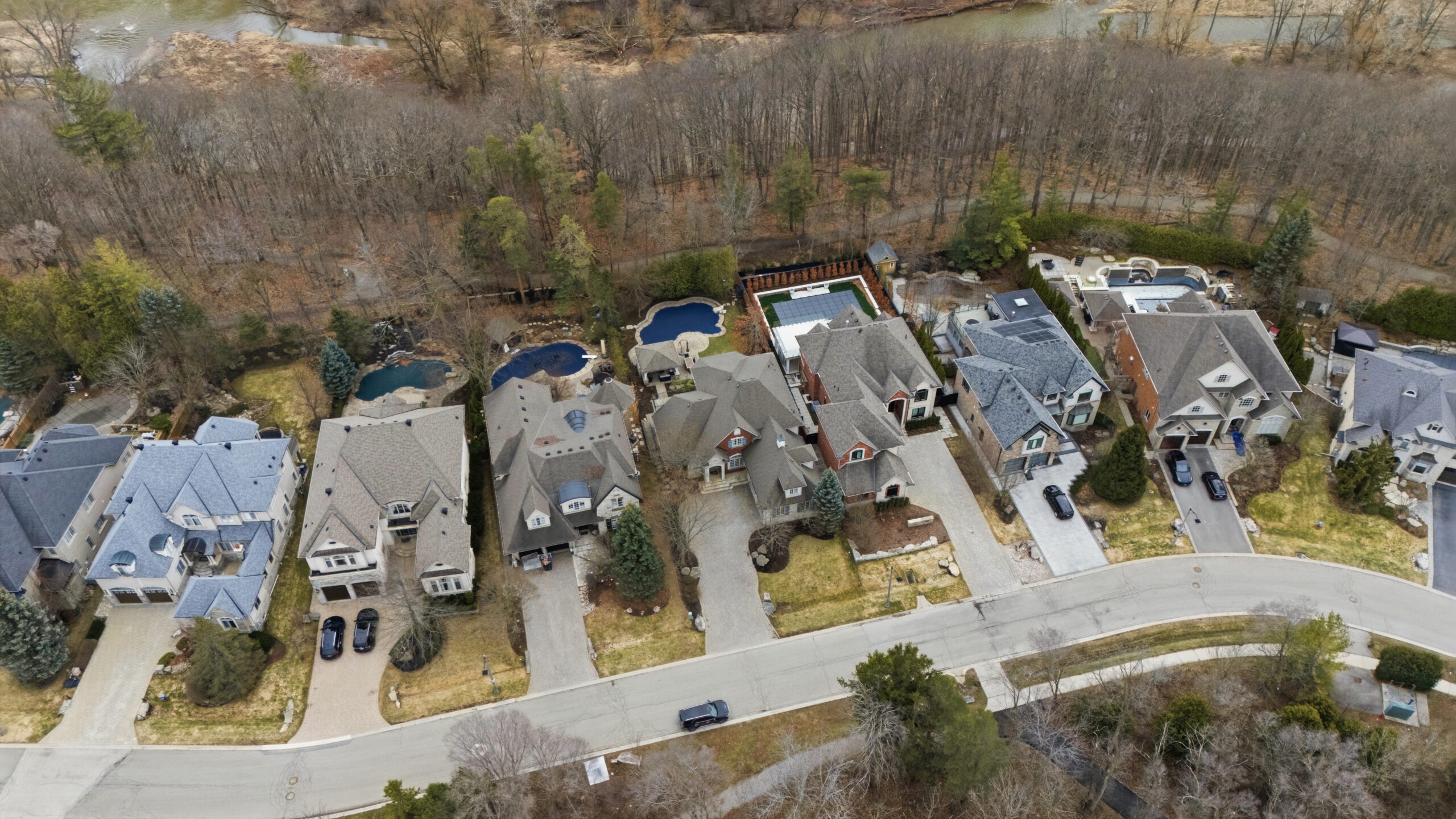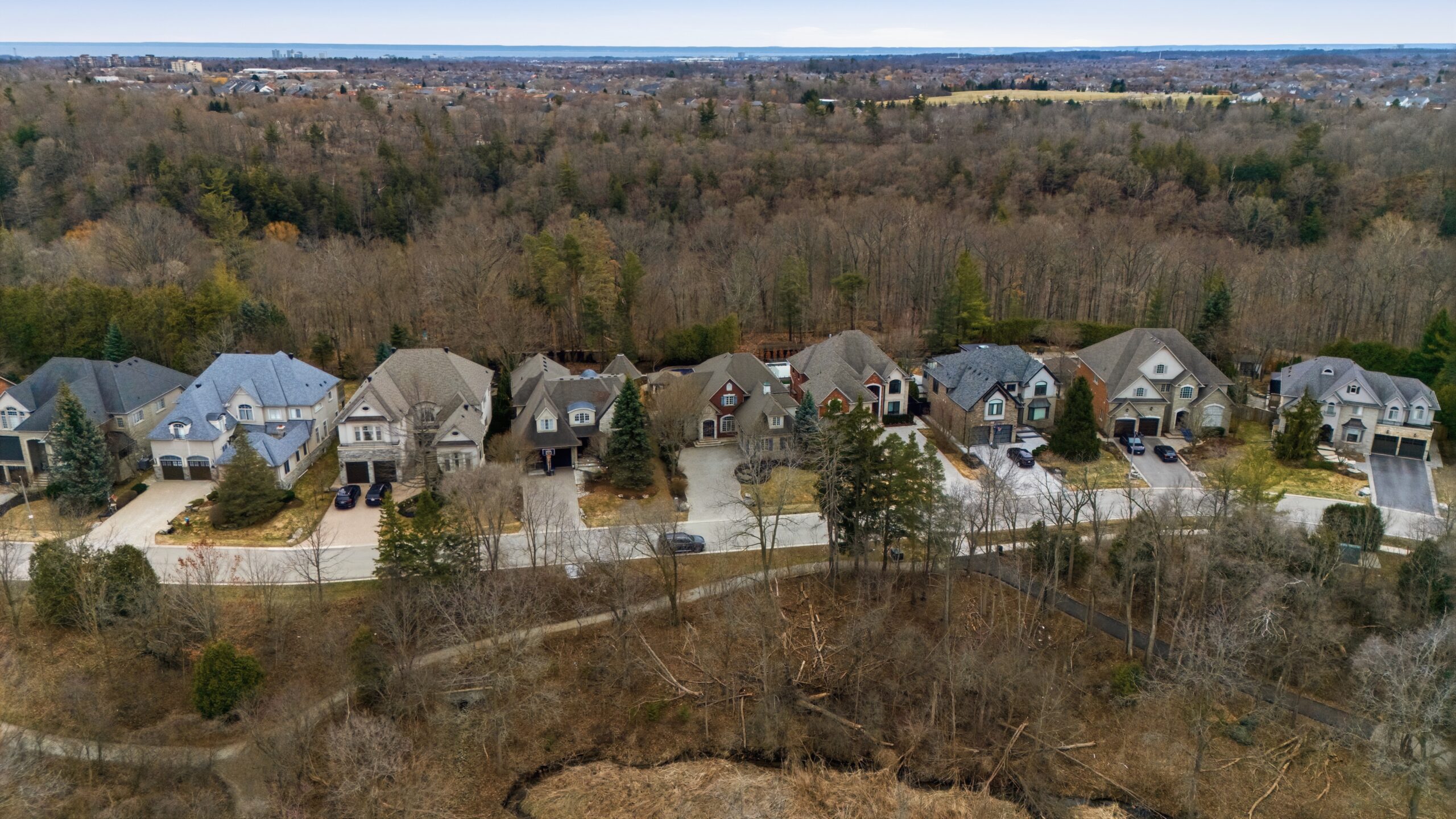 At the end of a quiet cul-de-sac in the exclusive Valleyview enclave of River Oaks, this exceptional residence occupies a rare double-ravine position — fronting onto a tranquil wooded ravine and backing directly onto the protected banks of Sixteen Mile Creek.
