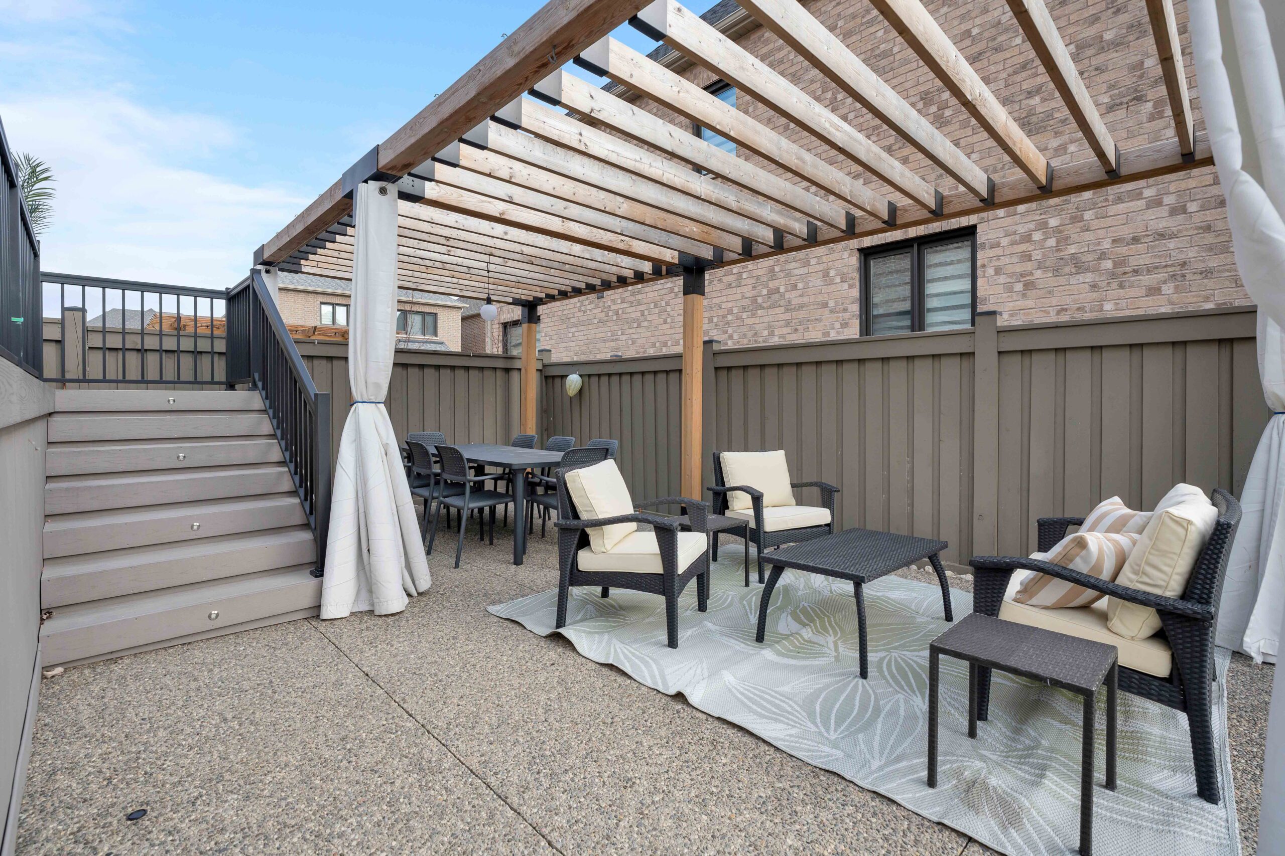 - Fully landscaped and fenced two-tier backyard with multiple areas for enjoyment: composite deck, gas BBQ line, aggregate concrete patio, large pergola, and a separate lawn area