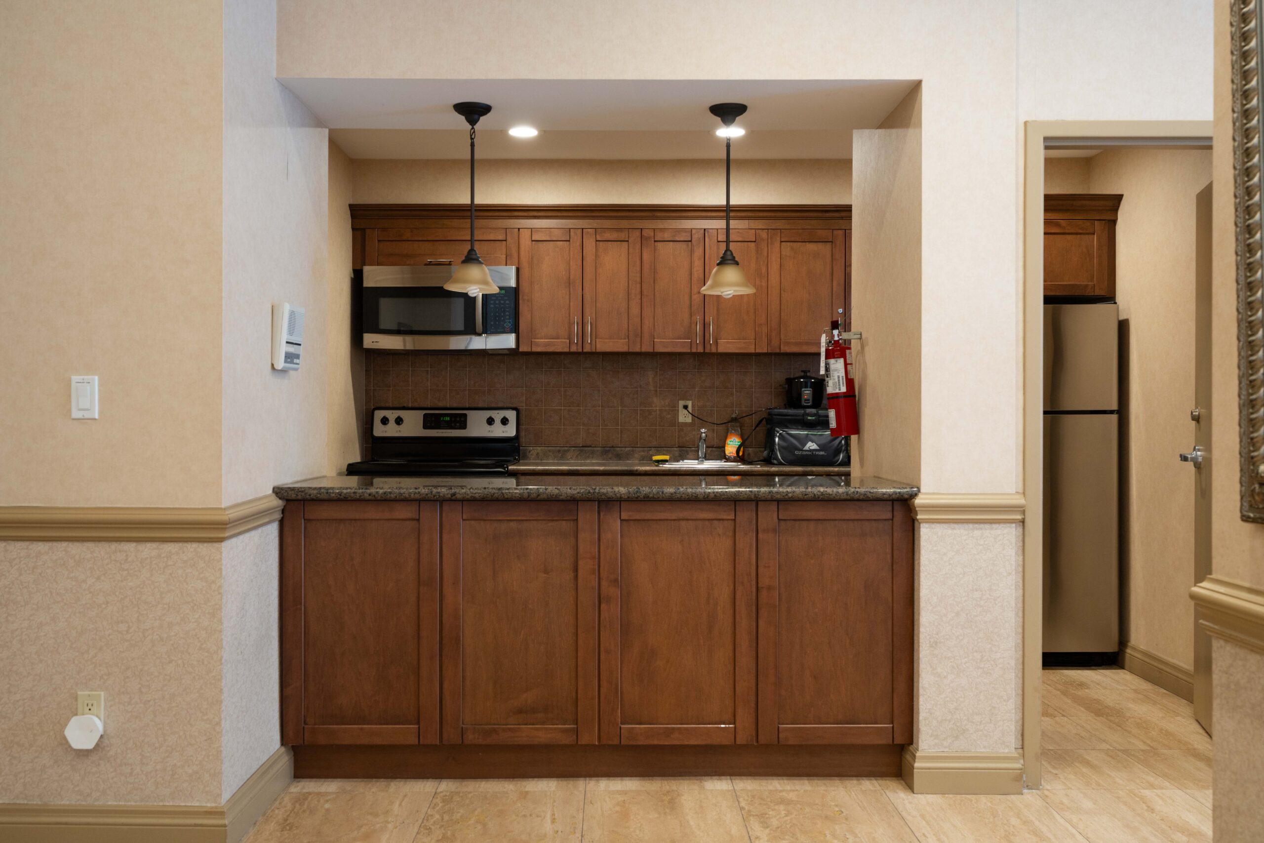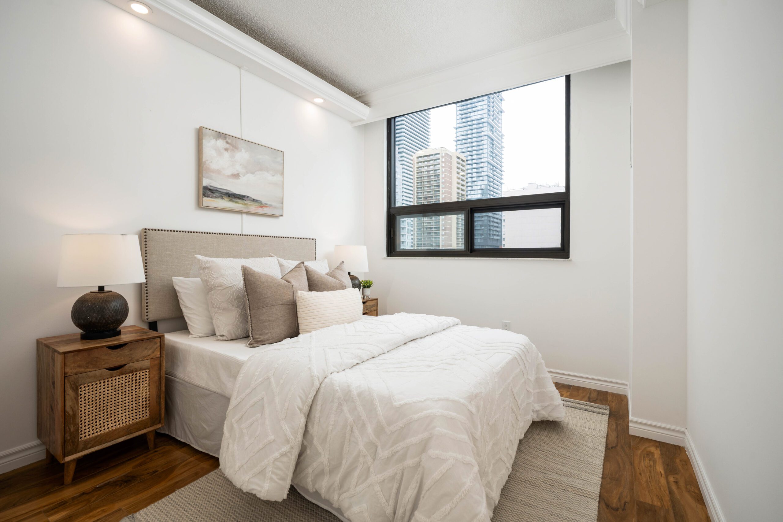 - Large, updated black frame windows fill the suite with natural light
