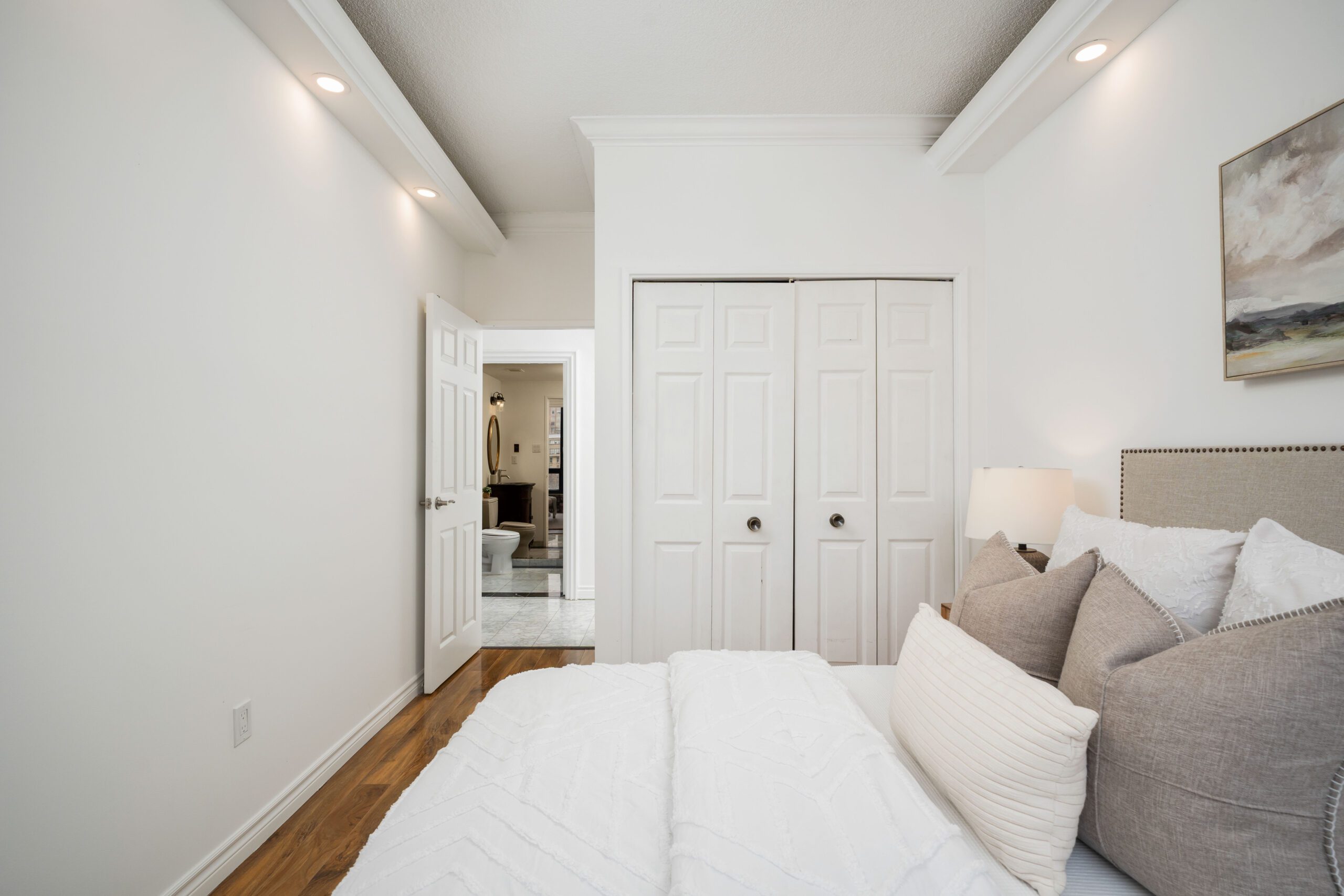 - Two sizable bedrooms with laminate, bamboo flooring and pot lights